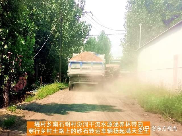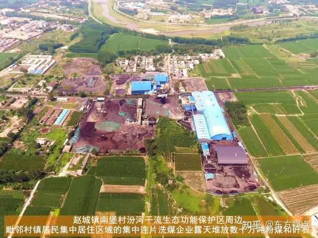 不仅如此,近年来由于监管失守和任性审批,洪洞境内汾河干流两岸生态功能保护区周边的非法采砂和洗煤企业更是遍地开花。在堤村乡南石明村一带,散乱分布着七八家的洗砂和储煤企业,数万吨的粉煤和砂石侵占大片林地和农田;在赵城镇南堡村一带,集中连片的洗煤企业违反环评露天生产,场区堆放数十万吨粉煤和废弃矸石;在辛庄乡的马牧村一带,多家非法砂场公然侵占百亩耕地大肆毁田采砂,大片农田里面随处可见已被挖得坑坑洼洼的大型砂坑。异常混乱的矿产秩序,导致当地沿汾周边肆意私挖乱占林地耕地现象层出不穷,区域生态环境持续恶化。