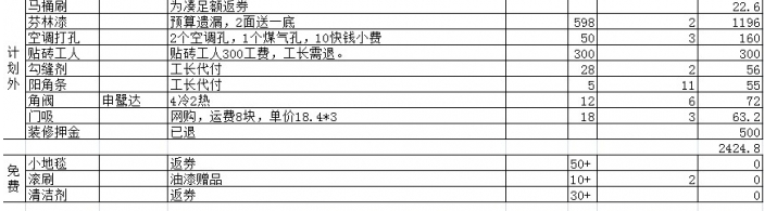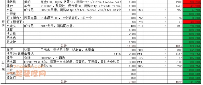 由于没买家具呢,主要是厨房和卫生间的买的差不多了,就贴上这俩空间的物品预算给大家瞅瞅: